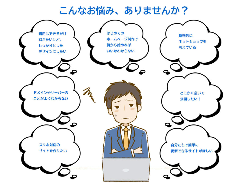 ホームページ制作に関するお悩み・不安、すべてお聞かせください。